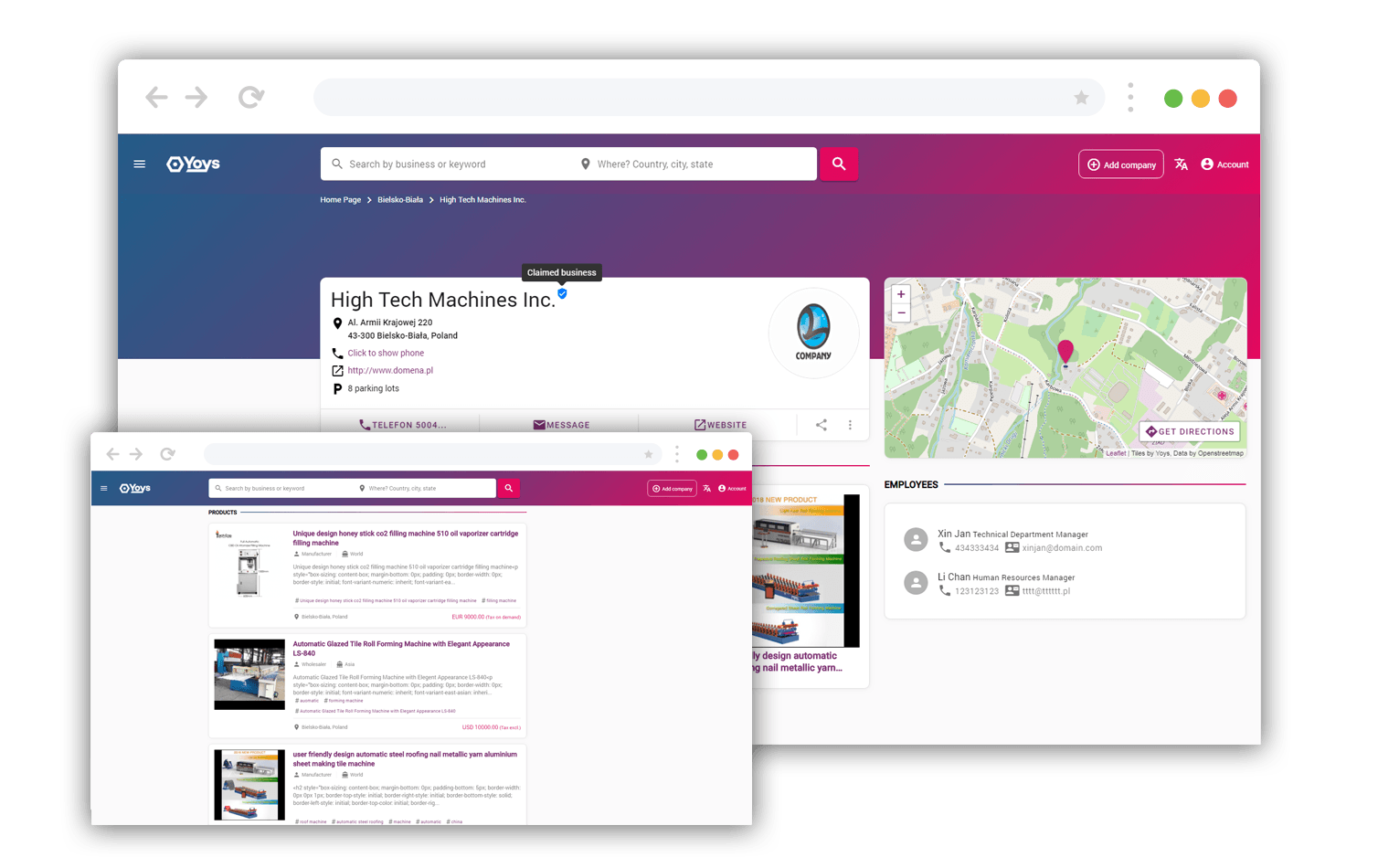 Give your company national or worldwide visibility. It's up to you! Businesses looking for suppliers in your field will be able to find and contact you.